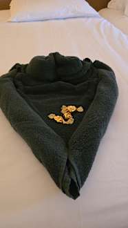 Jeden Tag tolle Handtuchmotive auf dem Bett :)