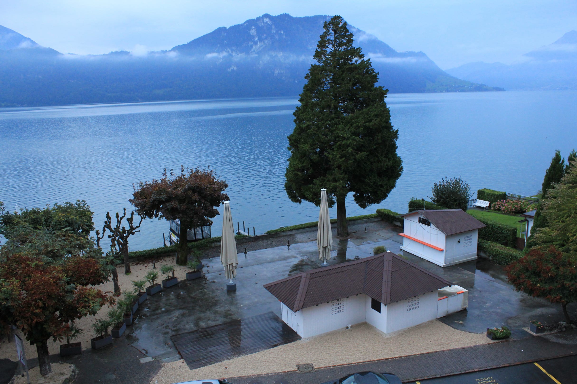 Blick auf den See bei Regen