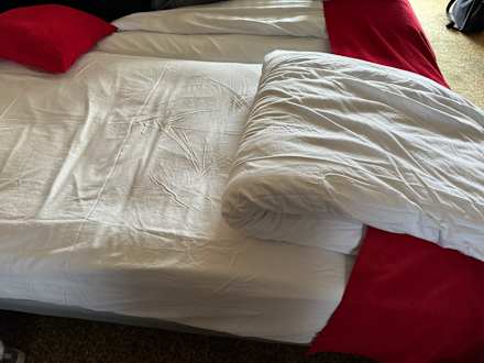 Das Bett sah nicht frisch bezogen aus sondern eher nur gemacht