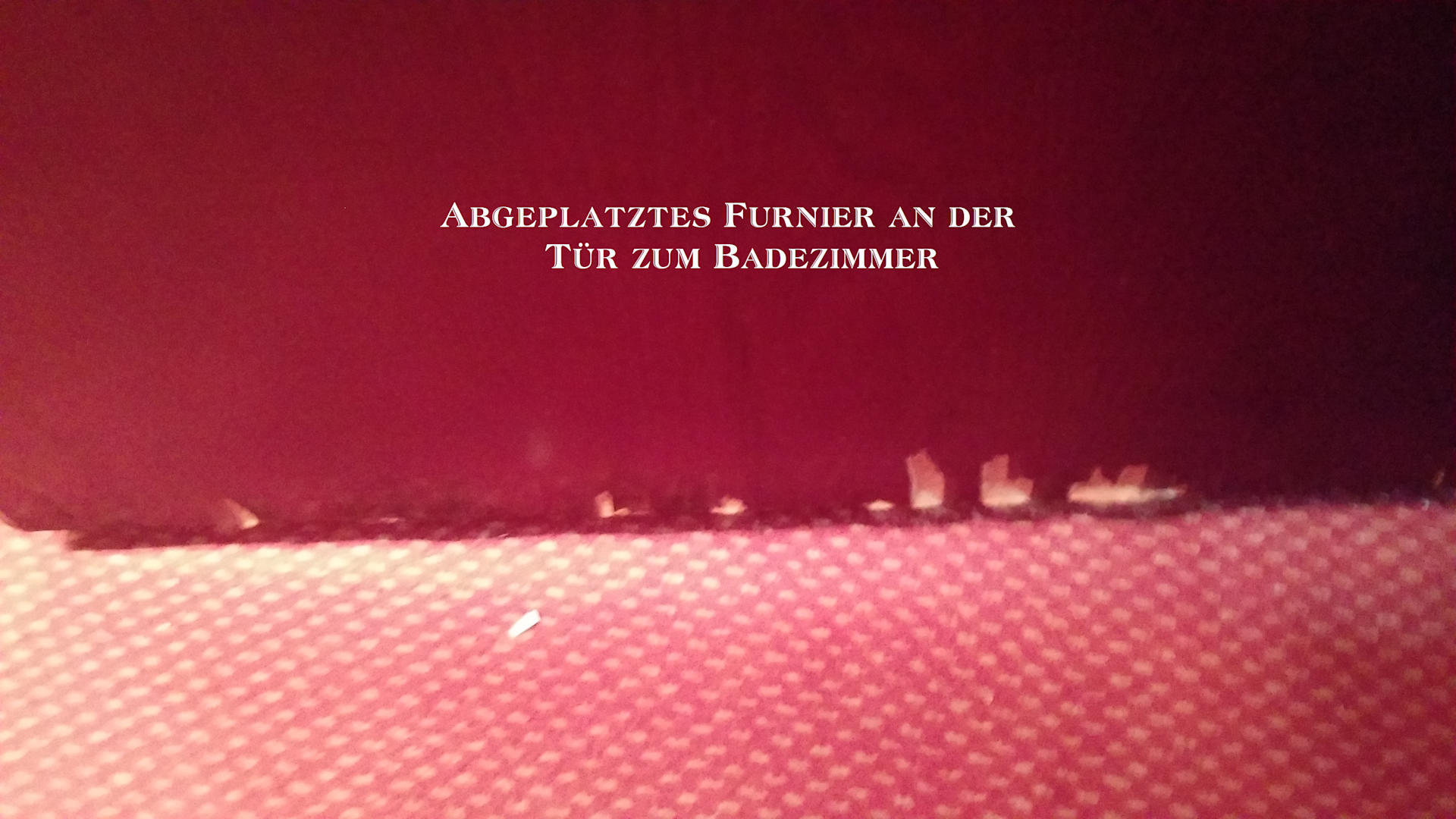 Abgeplatztes Furnier an der Tür zum Badezimmer