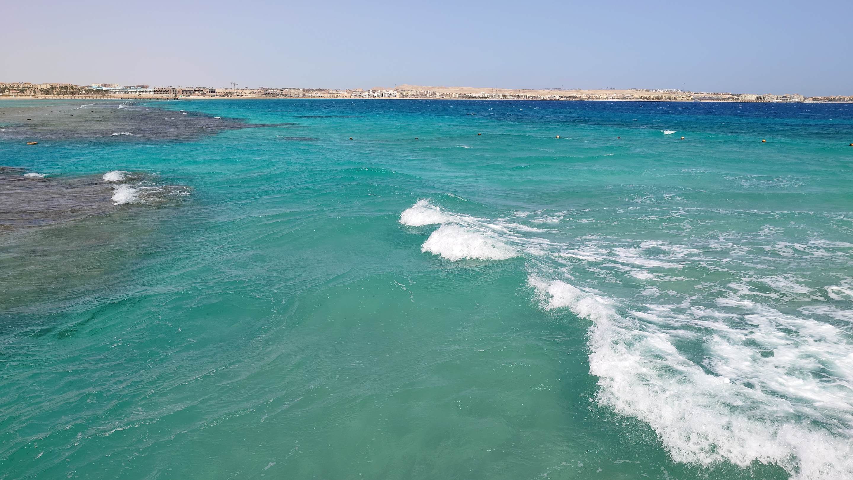 Von Badesteg des Hotel aus in Hintergrund Baron palace