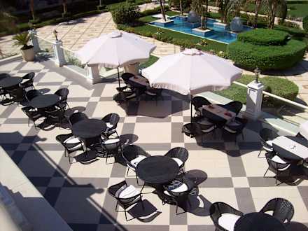 Blick auf die Terrasse des Hauptrestaurants