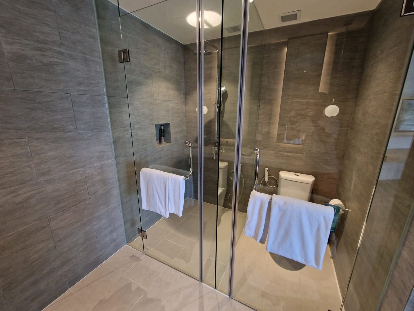 1 von 2 Duschen. Jedes Zimmer hat sein eigenes Badezimmer.