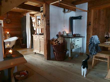 wie bei Oma früher , Besuch von der Chaletdorf Katze