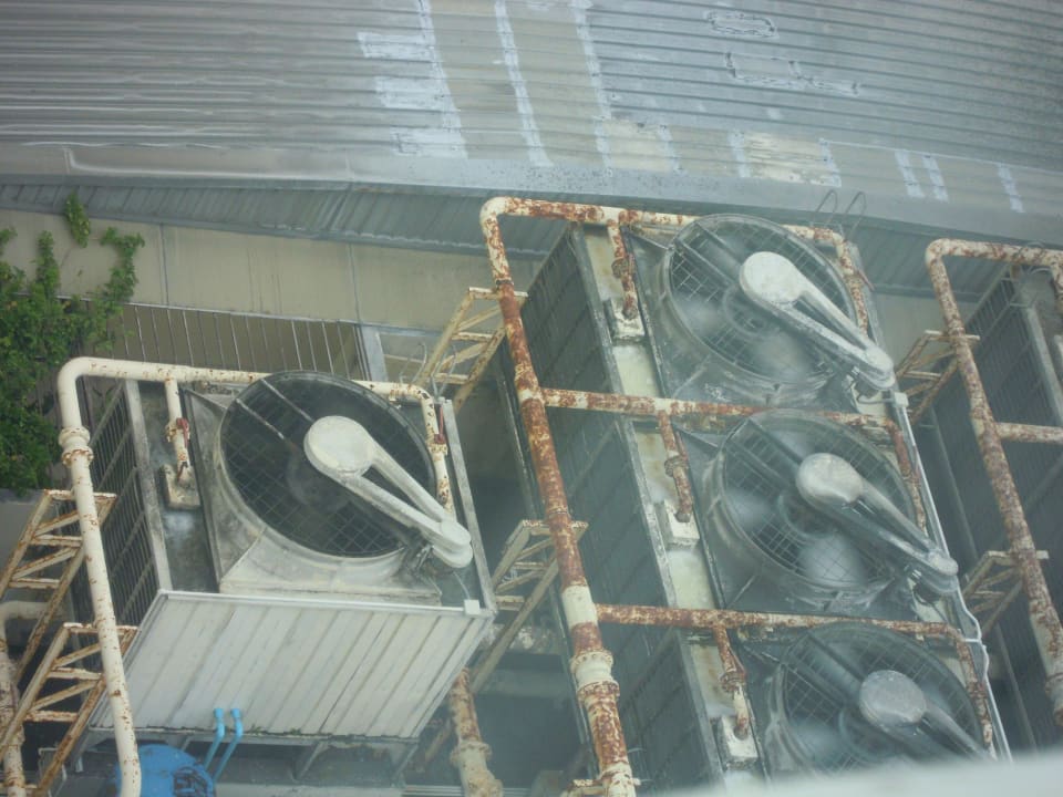 Blick aus dem zimmer, auf laute klimaanlagen