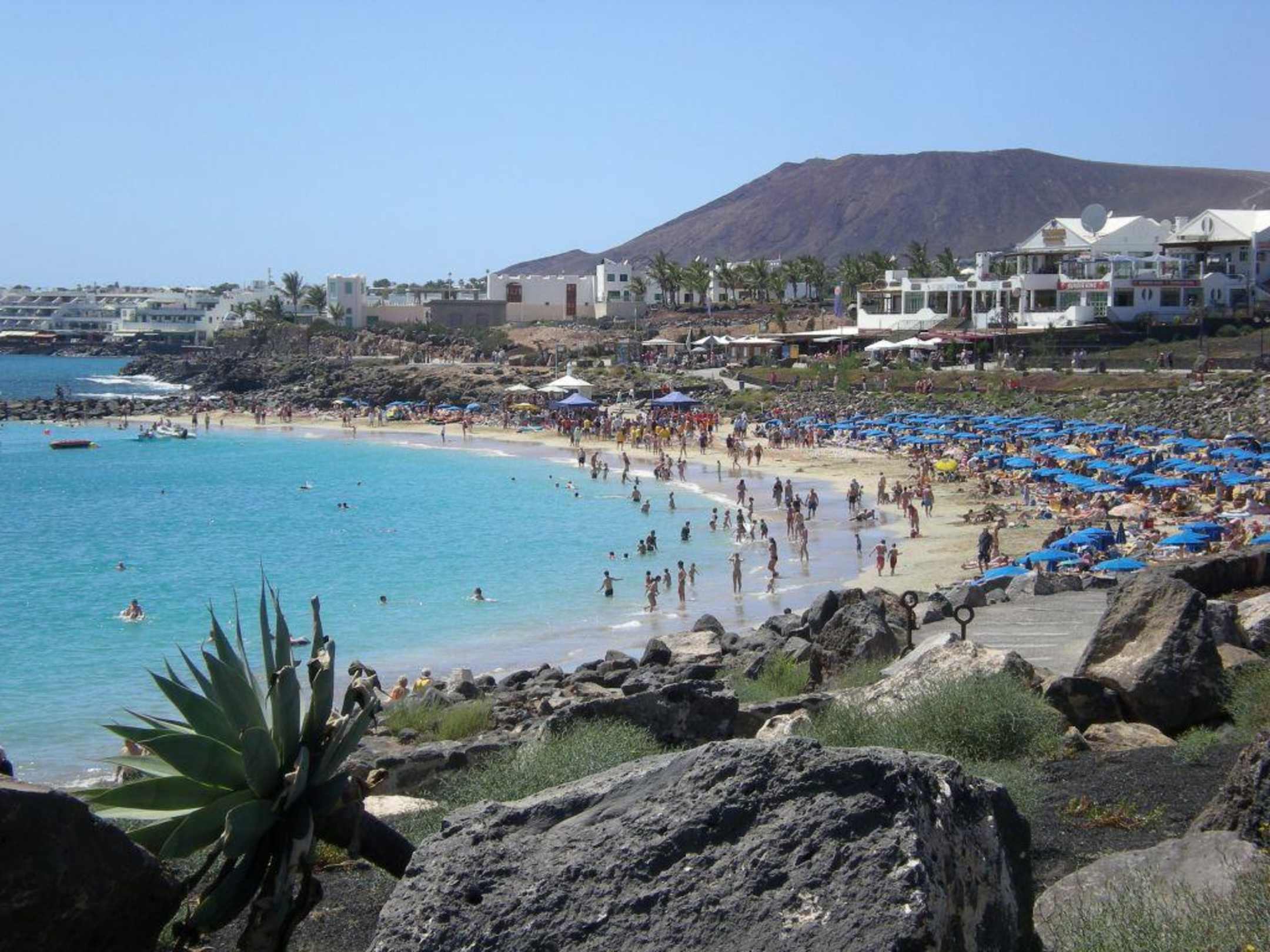 heller, überlaufener Sandstrand an der Promenade gegenüber dem Hotel