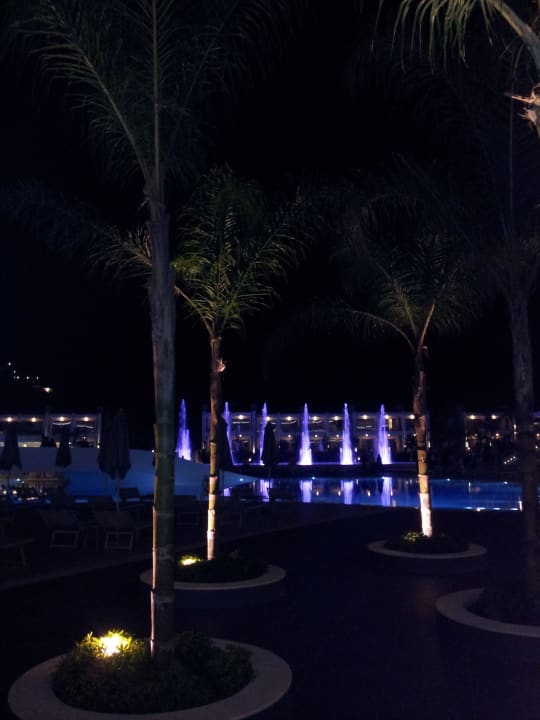 Nocny widok basenu i fontanny