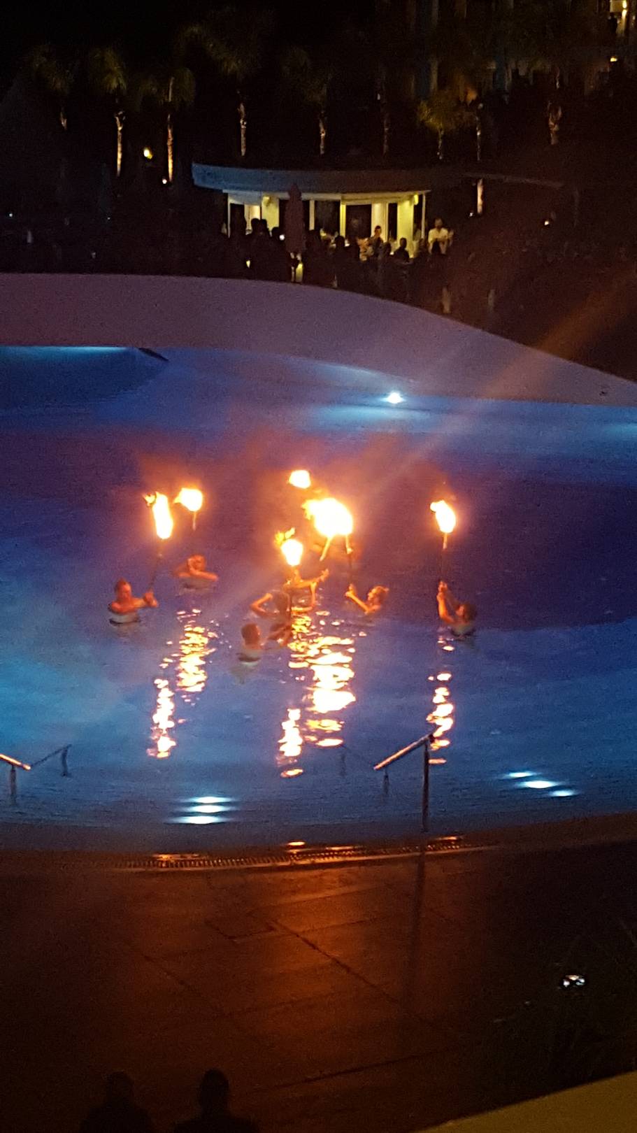 Abendliche Show im Pool