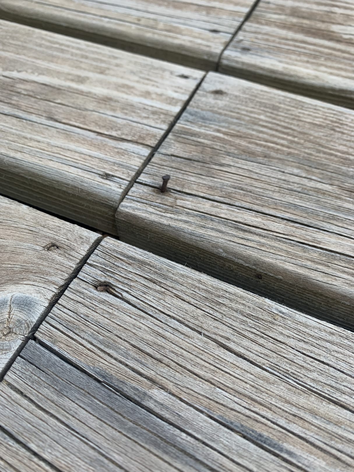 Rostige abstehende Nägel vermehr auf der Terrasse
