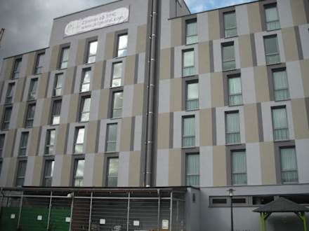 Blick vom Parkplatz auf die Hotelrückseite Prize by Radisson, Bremen City