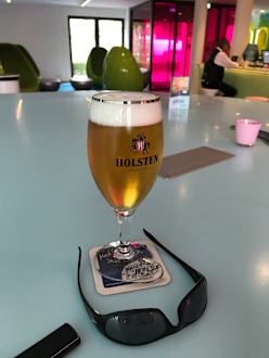 Mein erstes Bier kurz nach dem Eichecken. Nach der Hinfahrt mit dem Moppet war es ein Genuss.