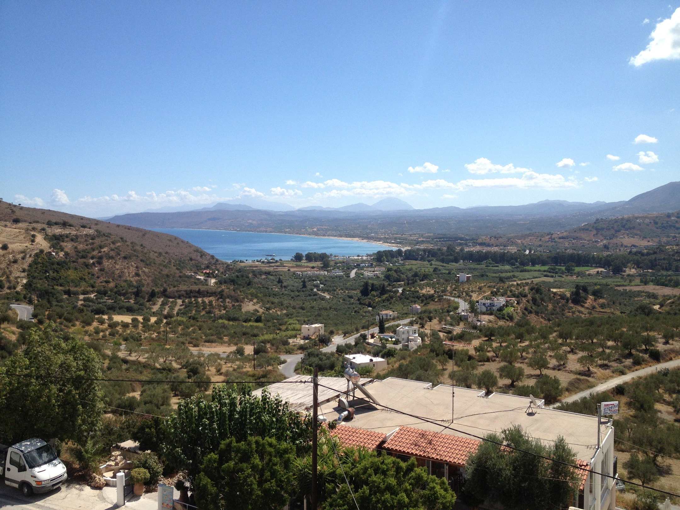 In der Nacht sieht man das LichtermeerDas ist der Blick von allen Balkons. Im Vodergrund das Dach der Taverne. Im Hintergrund die Kretischen Gebirge