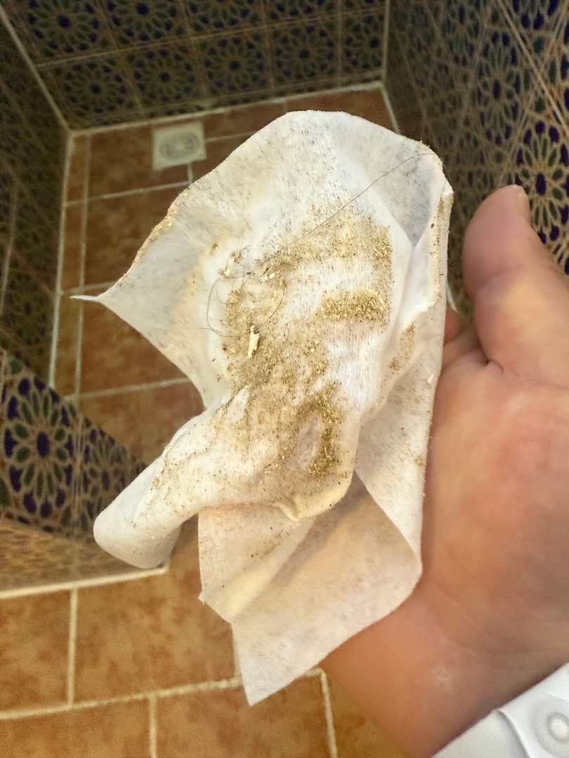 Kurz mal die Dusche durchgewischt, damit man sie nutzen kann....
