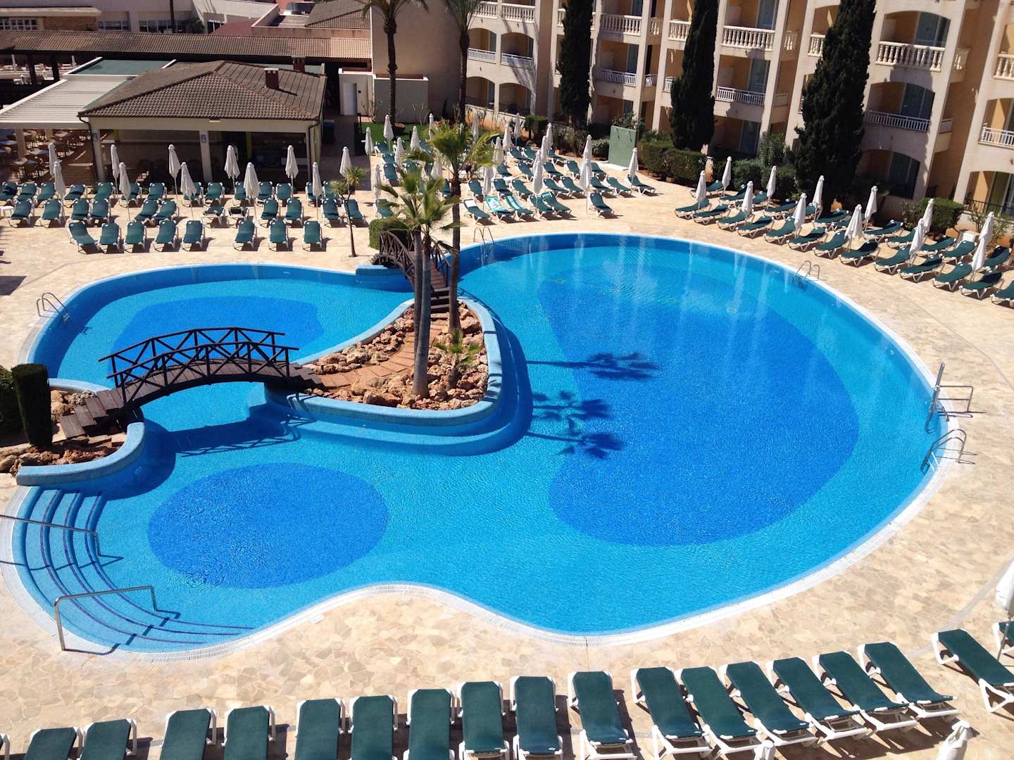 Blick vom Balkon auf den Pool