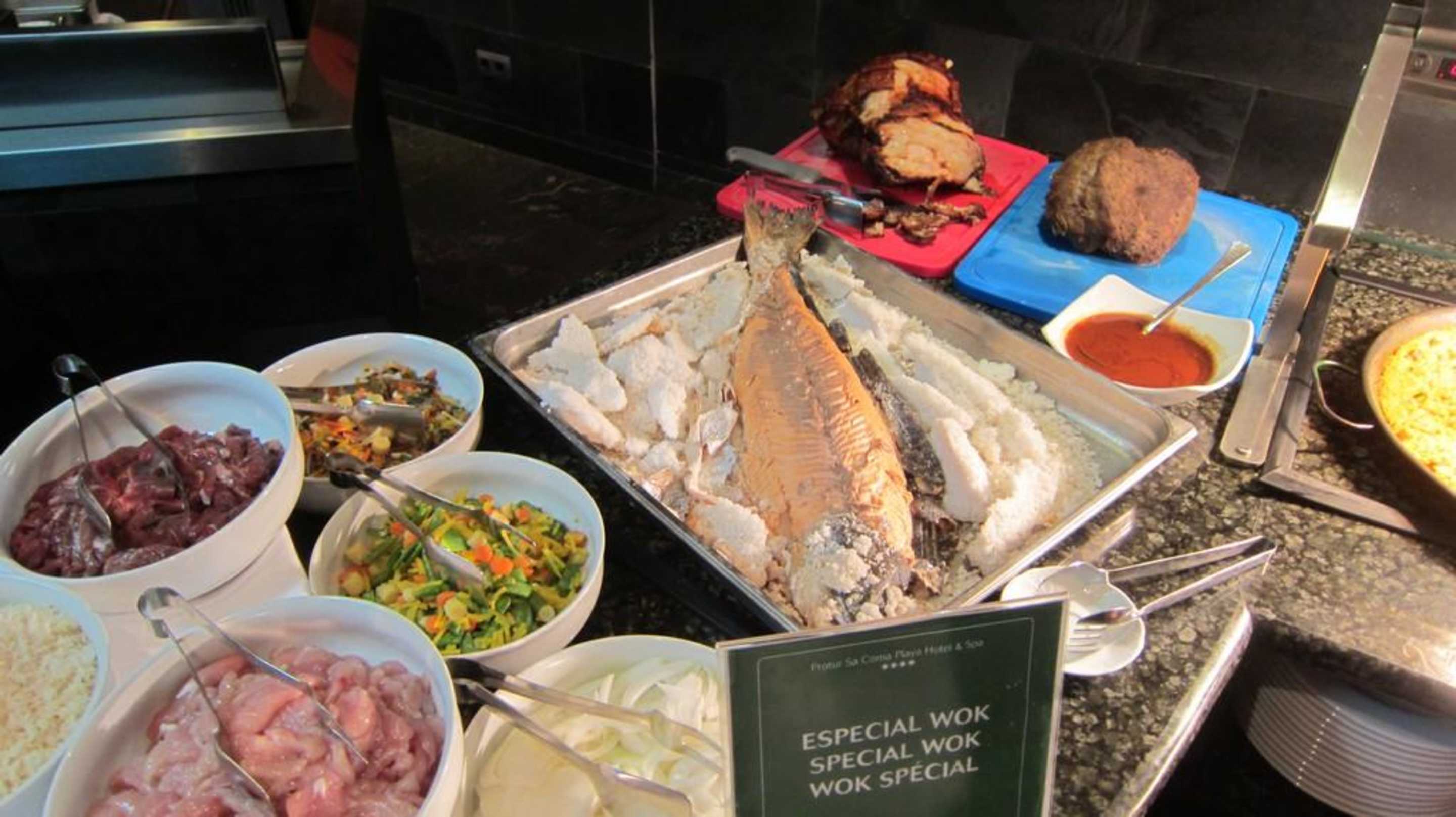 Zutatan für den Wok , leckerer Fisch und Braten