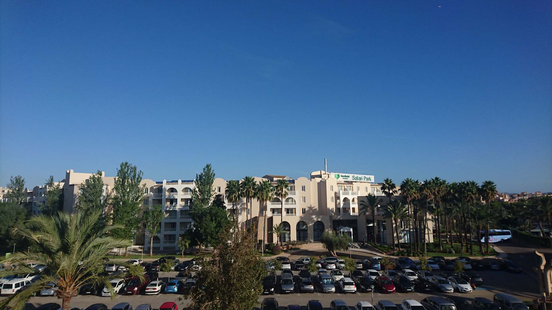 Das war der Ausblick aus unserem Zimmer, man sieht das zweite Hotel in welchem sich auch Themenrestaurants befinden. Selbst "direkt" an der Straße war es relativ ruhig, da hier wenige Autos entlang fahren (außer dem Personal).
