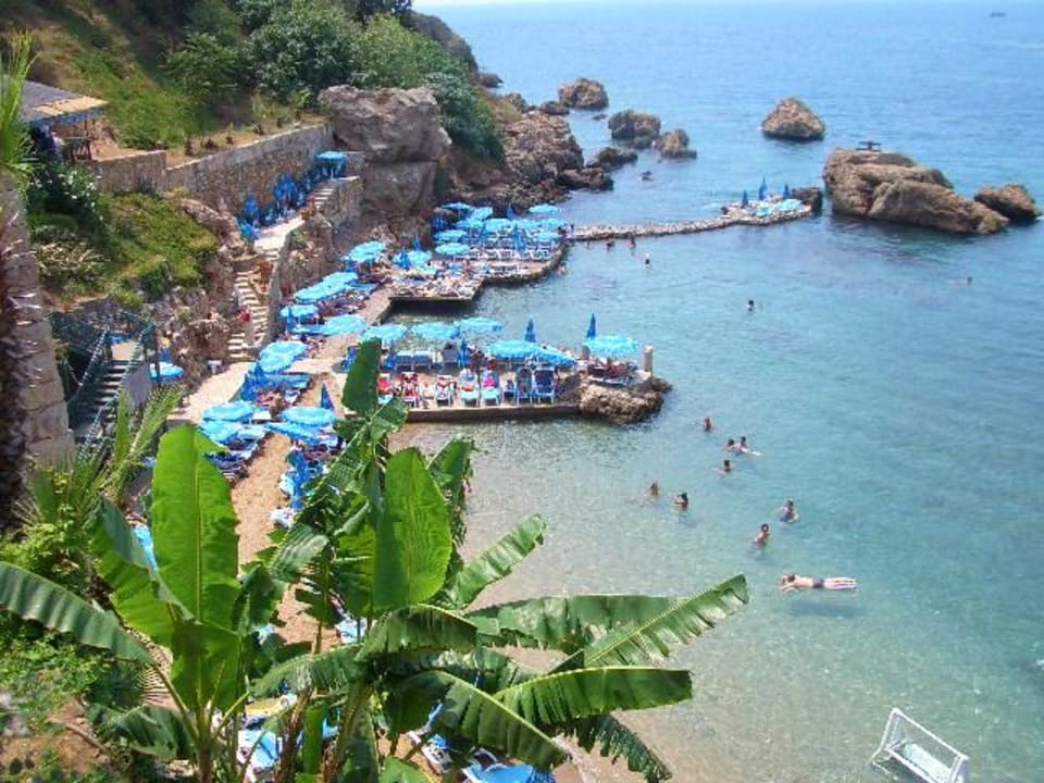 Das Bild zeigt den hübschen Strand Mermeli, etwa 100m vom Hotel entfernt.