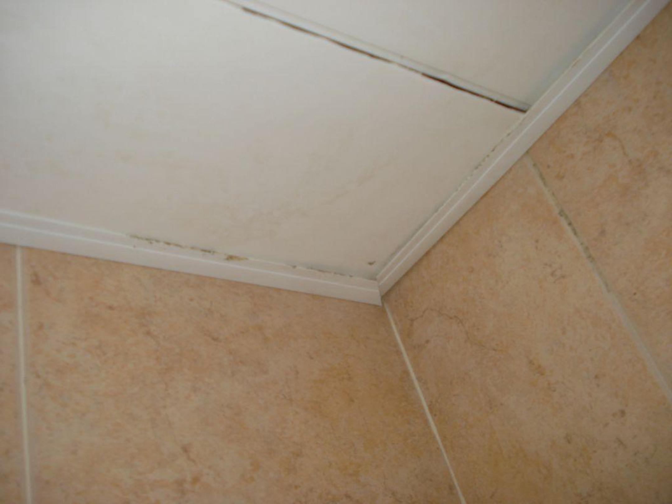 Verschimmelte, halb rausgebrochene Lammellen in der Decke im Bad
