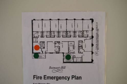 Schemagrundriss mit der Lage des Zimmers 1110 im Hotel, gleich neben einem Aufzug