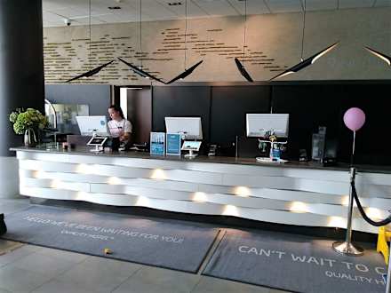Modern gestaltete Rezeption mit freundlichen Angestellten