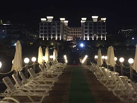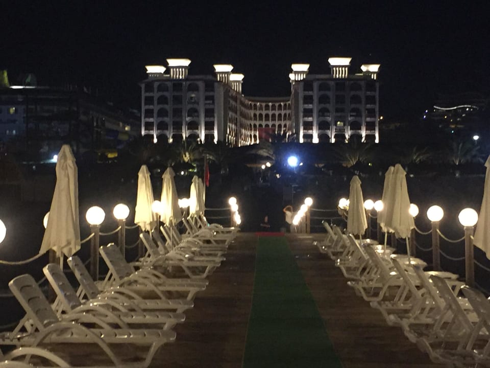 Ansicht des Hotels vom mehr aus bei Nacht