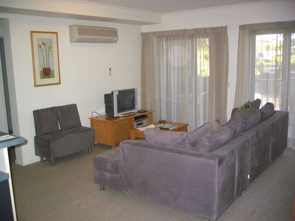 Wohnbereich mit DVD-Player und Klimaanlage (über dem TV-Gerät)