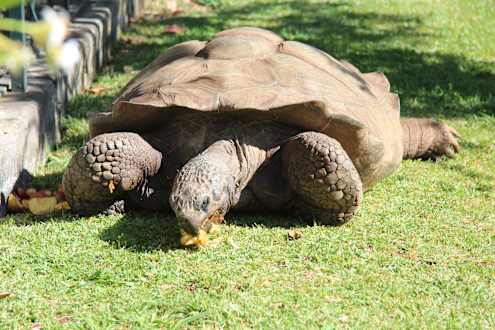 Schildkröte Colombo beim Frühstück