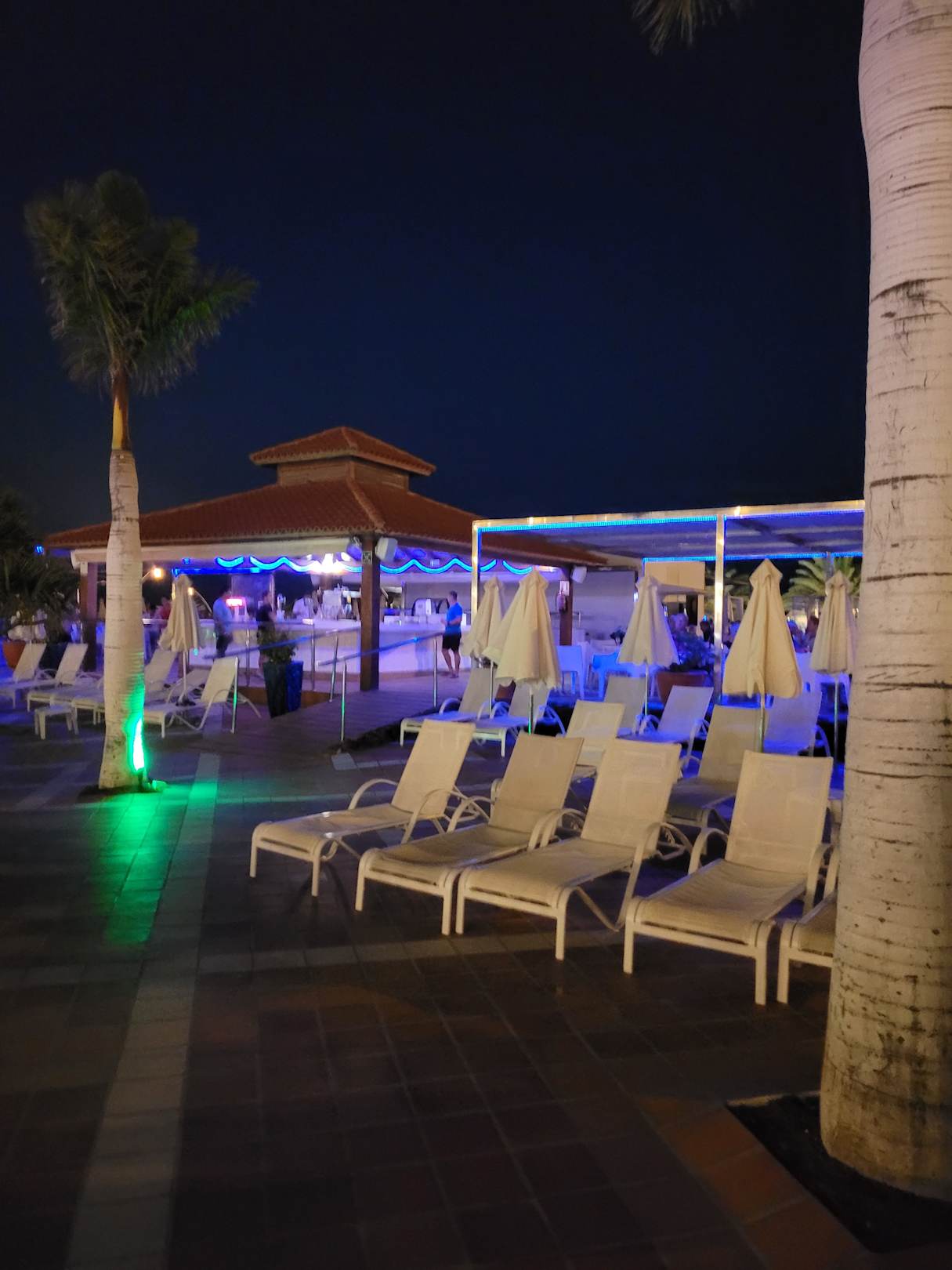 Abendliche Sicht auf die Poolbar