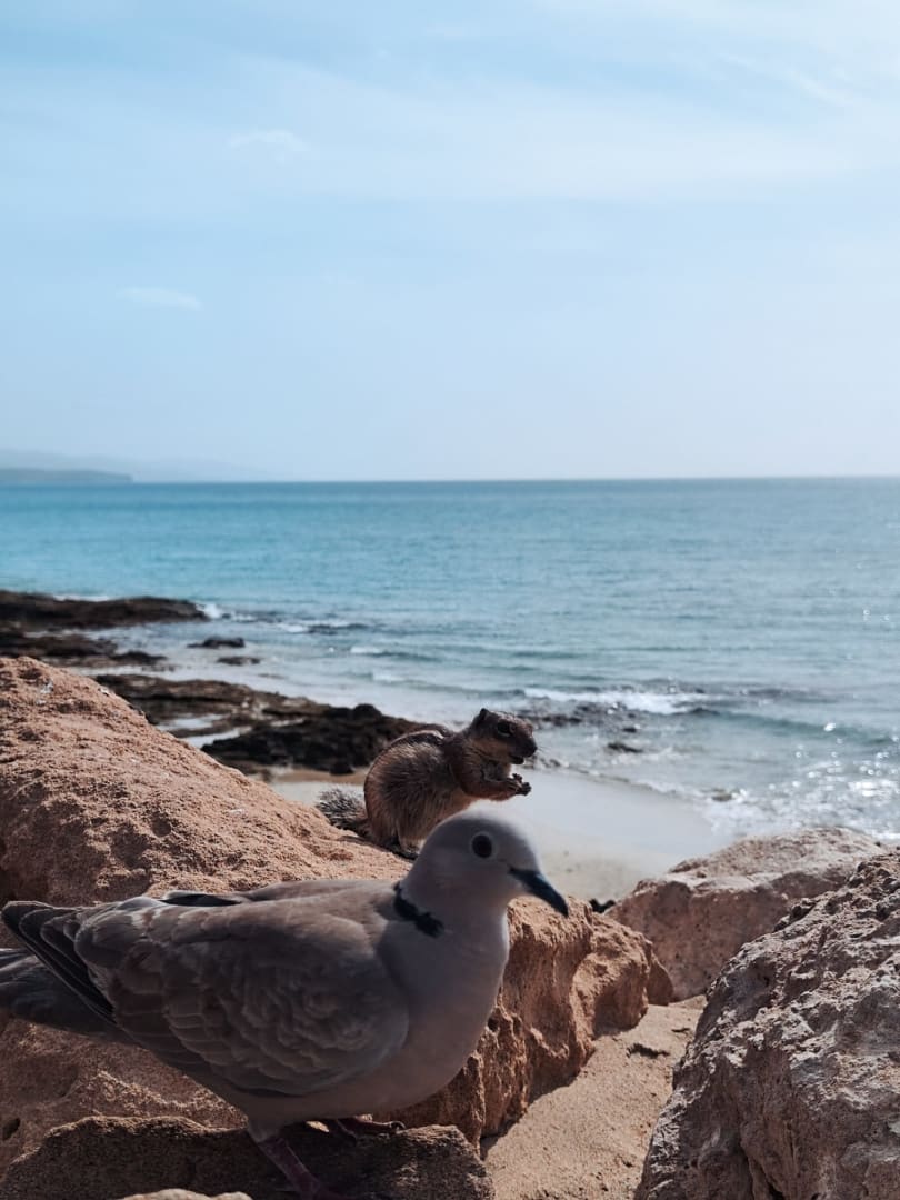 Tägliches Streifenhörnchen und Tauben füttern.