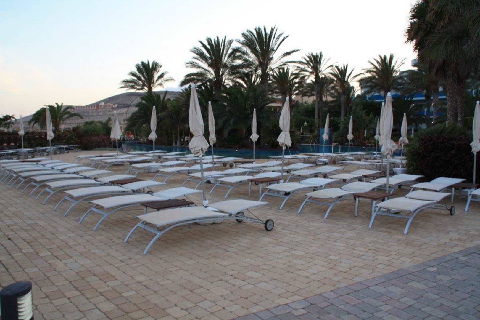 Die Liegen im Pajara Beach an der Poolanlage