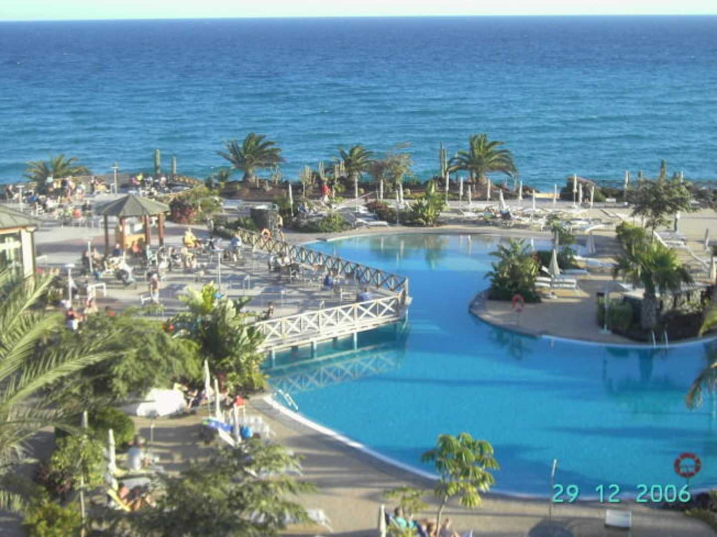 links ein Stück Terrasse der Poolbar. Der Pool ist auch nur zur Hälfte drauf.