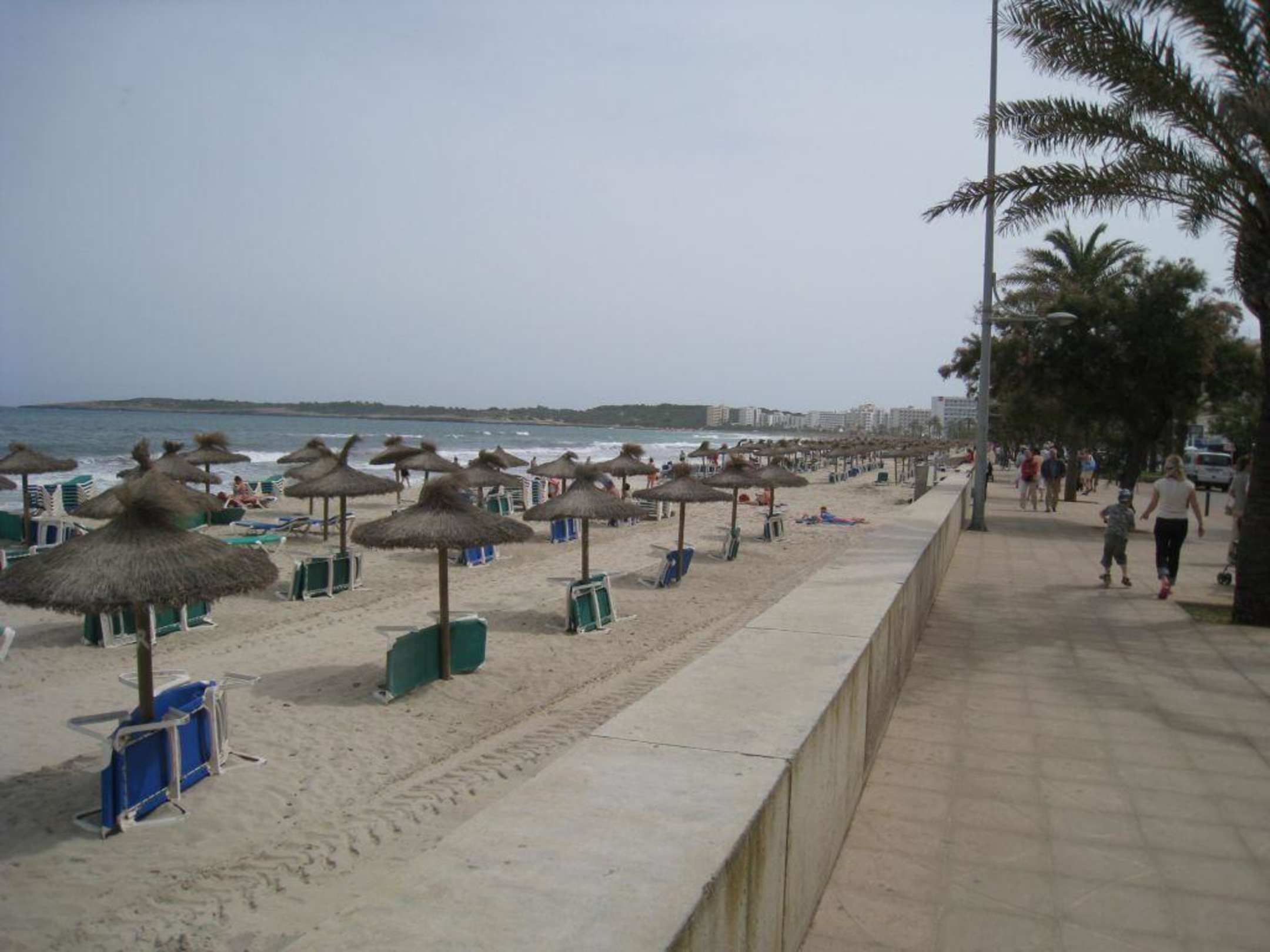 Die Liegen sind gegen 11 schon voll, auch im Mai. Dann wird auch kassiert und mehrmals täglich geprüft. 2 Liegen + Schirm kosteten 10,50 EUR.