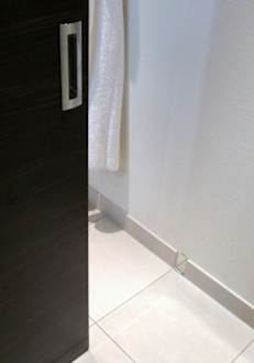 WC-EingangAuf dem Foto ist die "Rolltüre" sichtbar, die den WC- vom sonstigen Badbereich bzw. dem übrigen Zimmer abtrennt....