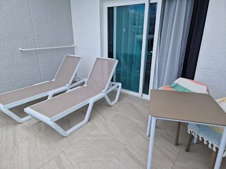 Der Balkon ist ausreichend und bietet genügend Platz.