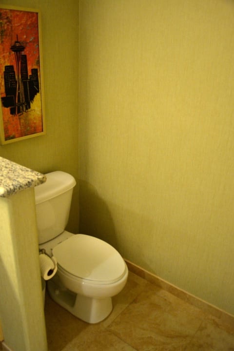 Die Toilette ist optisch leicht vom restlichen Bad getrennt