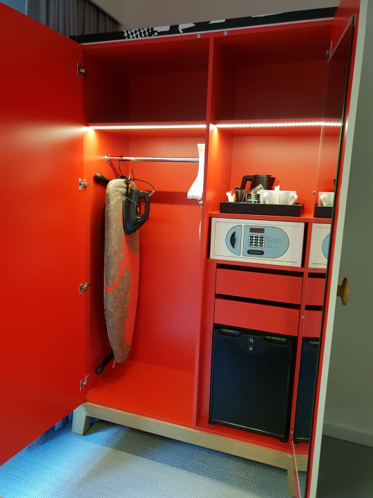 Kasten mit Kühlschrank, Safe, Bügelausstattung und Wasserkocher