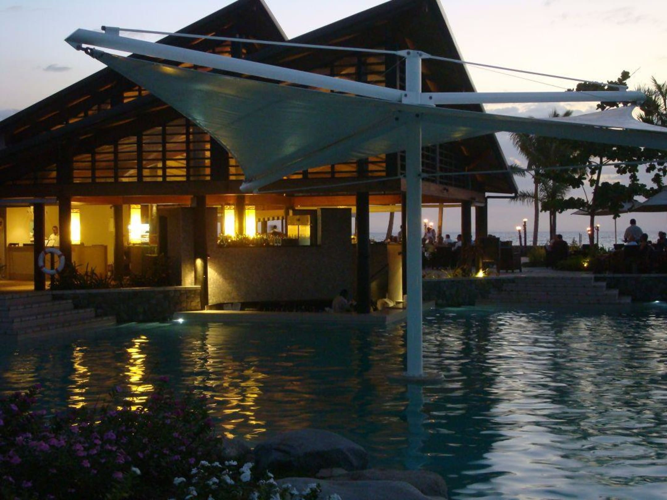 Pool und Restaurant am Abend