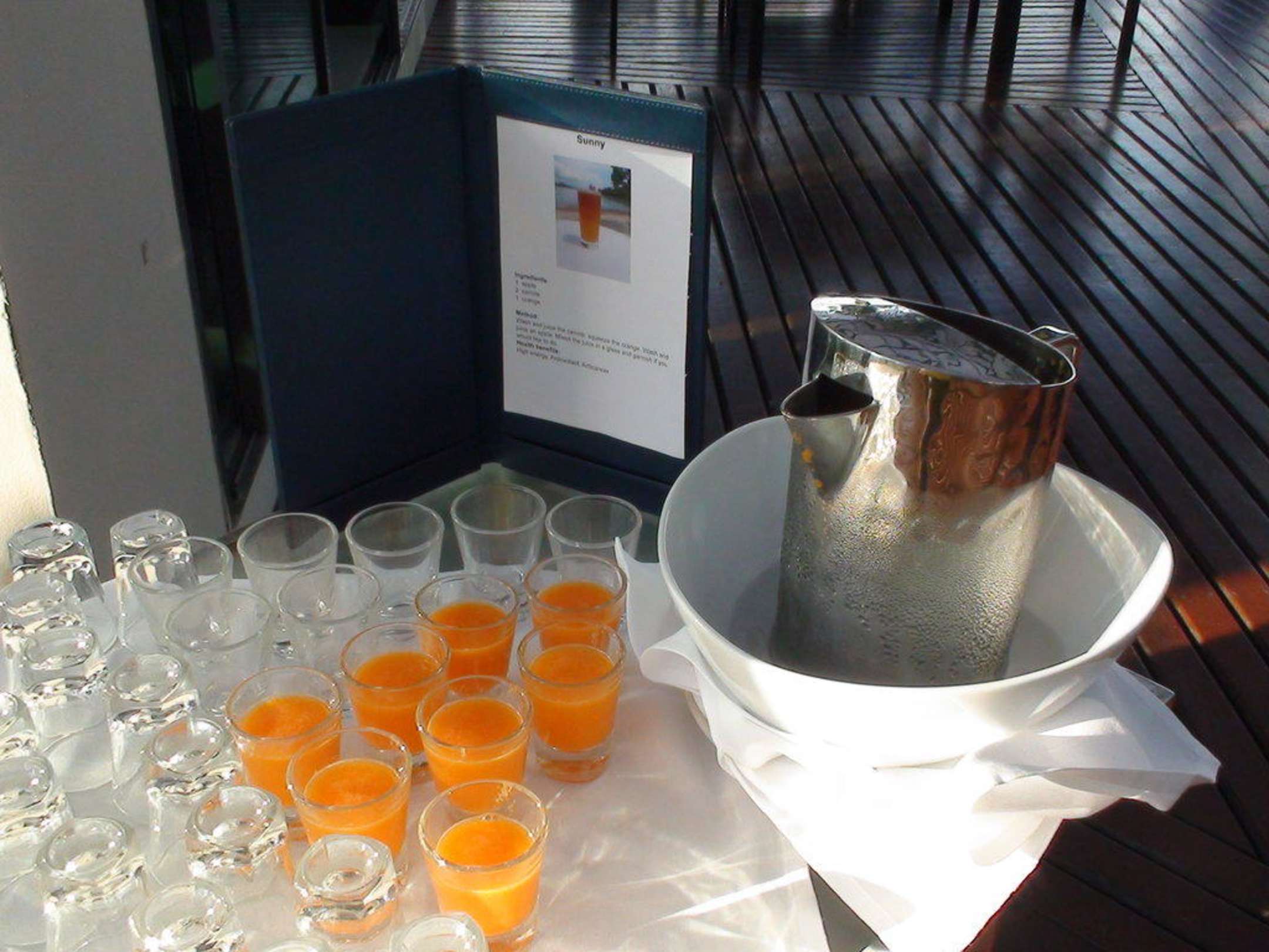 FrühstückAn jedem Morgen wird bei dem Betreten des Frühstücks ein ganz leckerer Freshfruitcocktail serviert.