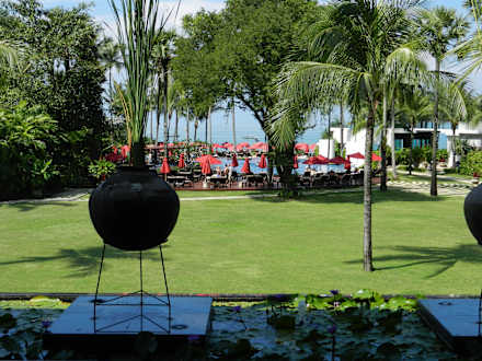 Blick von der Lobby zum Pool