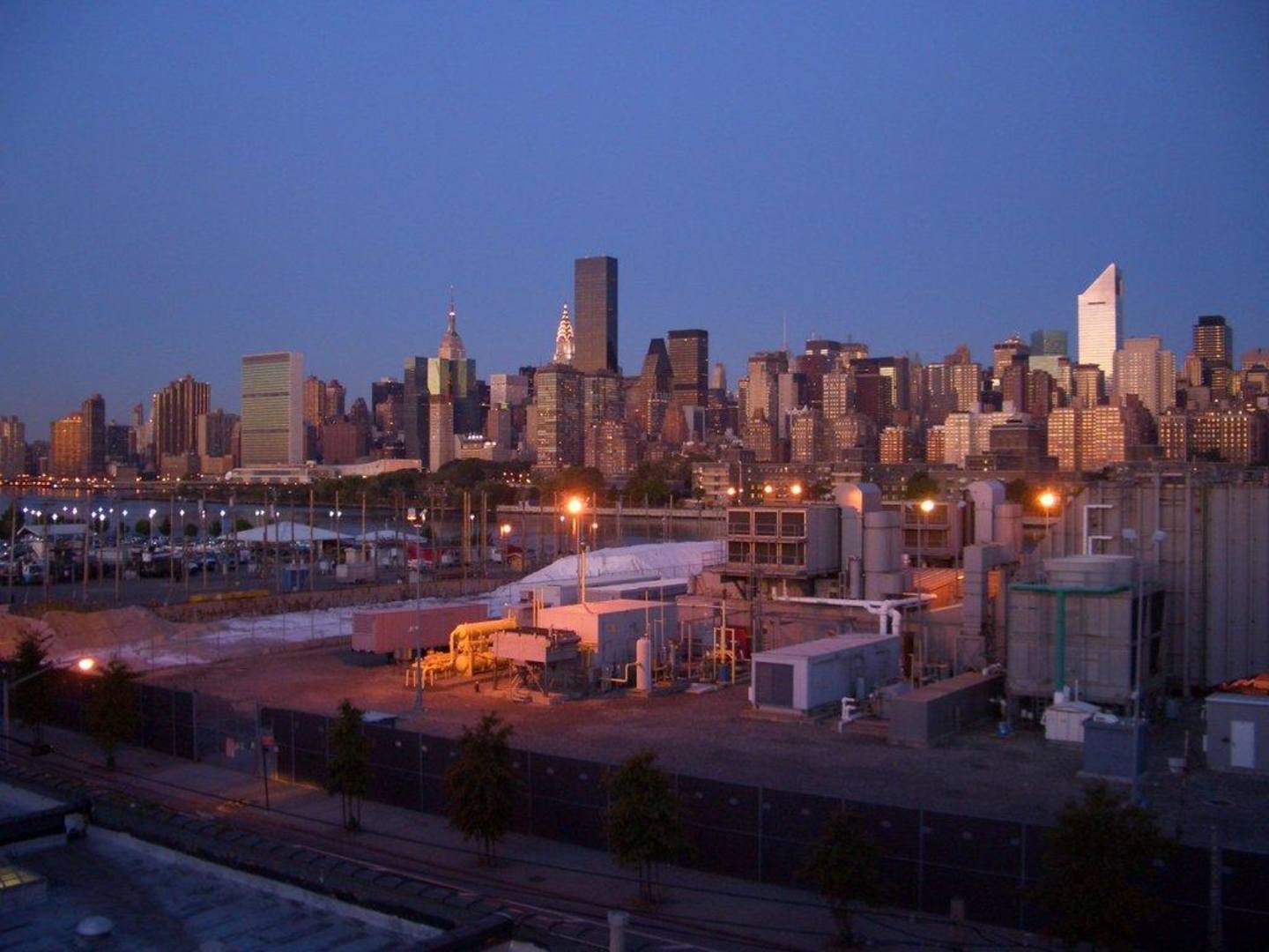 Der Blick aus unserem Hotelzimmer am Abend auf die Skyline von Manhatten