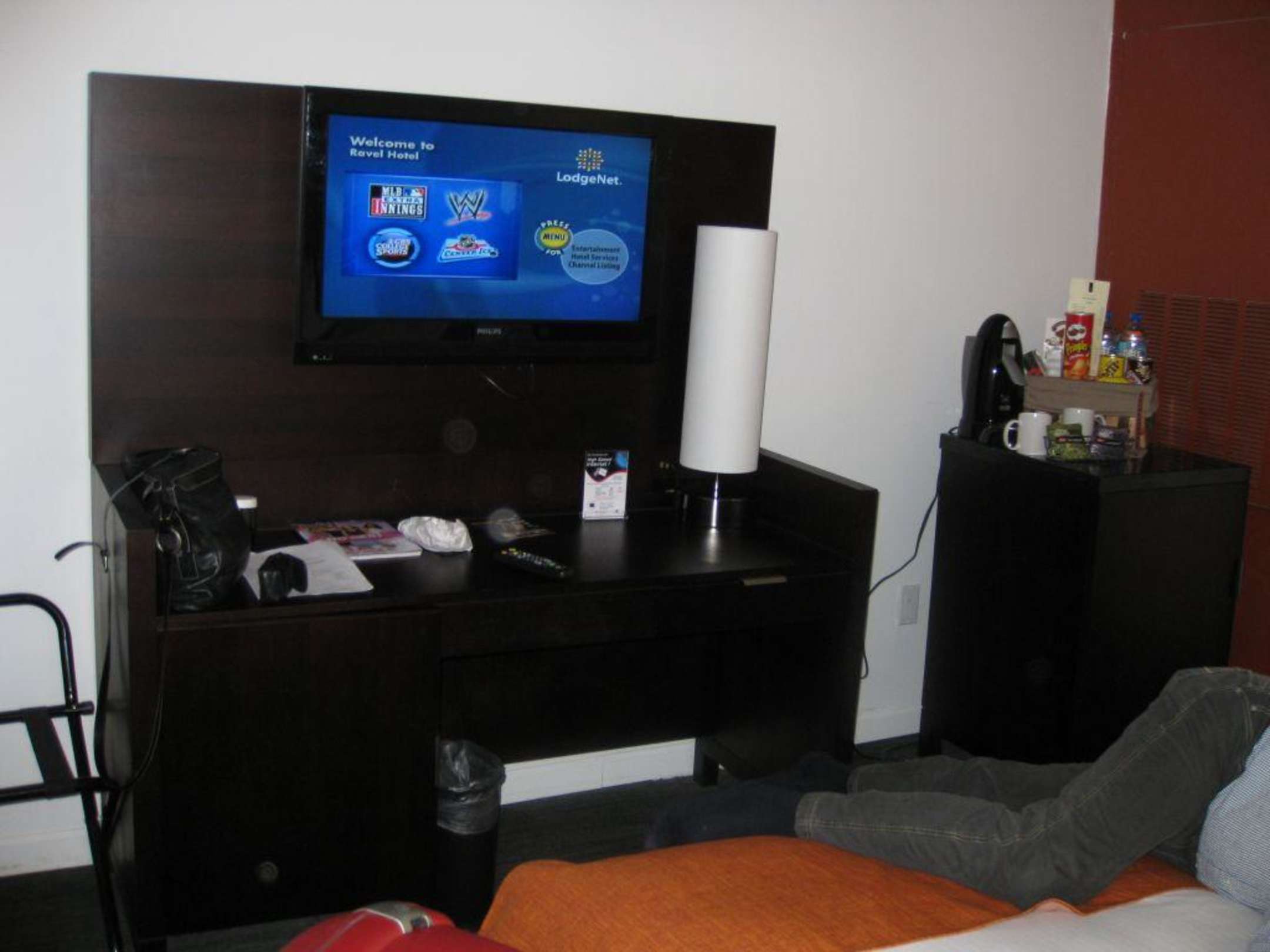 großer Fernsehergroßer Fernseher im Zimmer, alles neu und chick aber nur ein Stuhl, kein Sofa und der Balkon komplett ohne Möbel