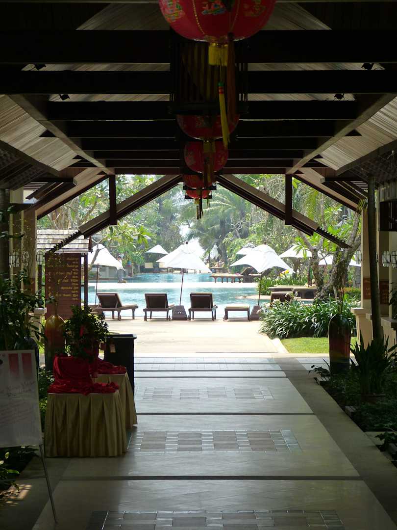 Blick von der Lobby zum Pool