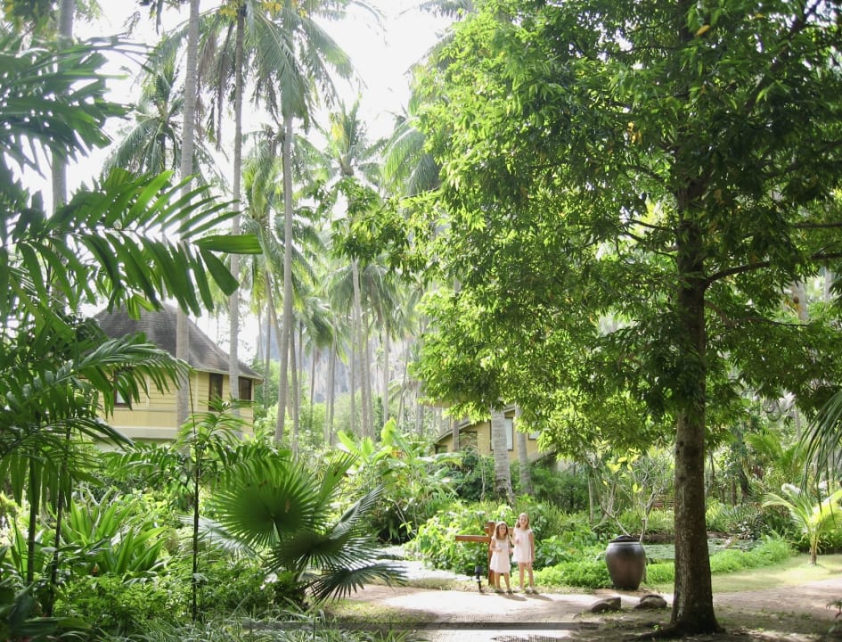 Spaziergang durch die tropische Parkanlage auf dem Weg zum Frühstück