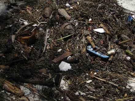 Natürliche StrandreinigungAnsammlung vor dem gelben Tor nach der Vollmond-Flut