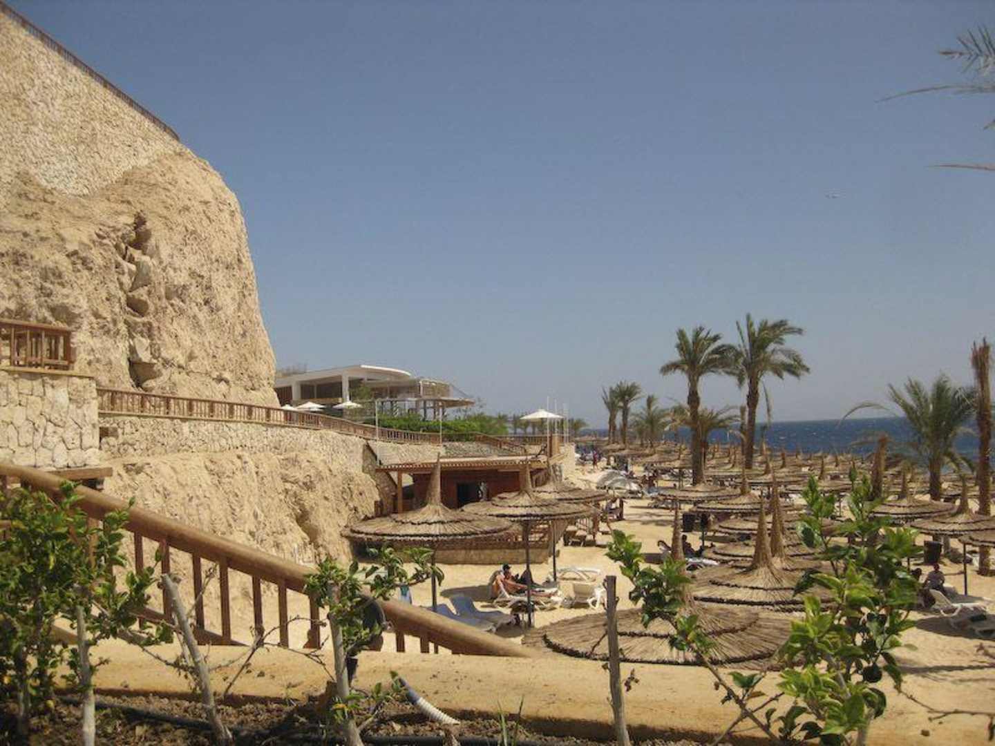 Blick vom Whirlpool auf Strand/Tauchstation