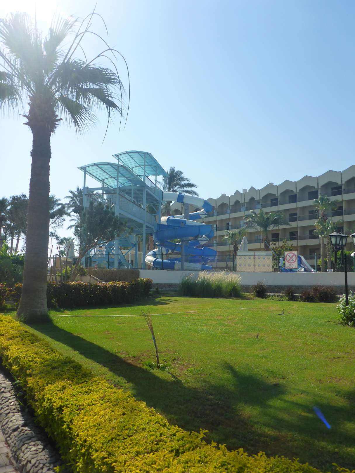 die Rutschen und dahinter der Neue Block mit Zimmer zum Meer