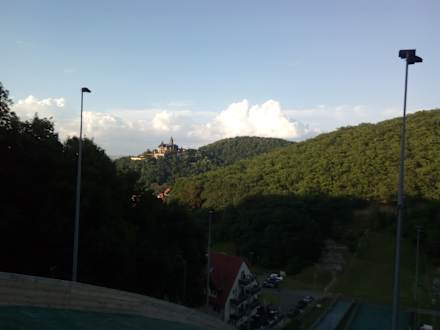 Blick zum Hotel und zum Schloss von der Schanze aus.