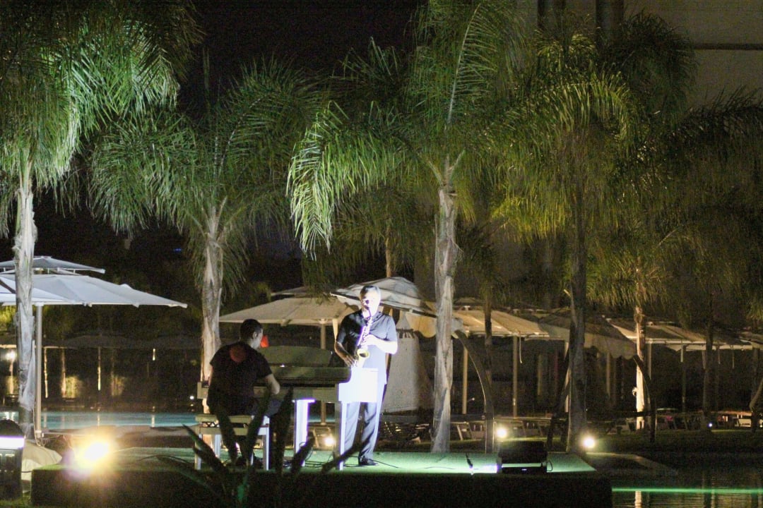 Klavier und Saxophon am Pool