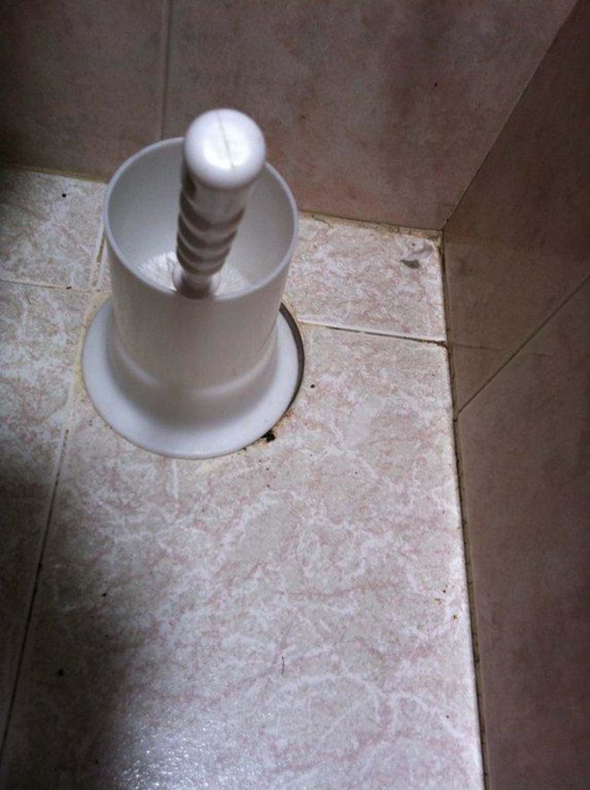 Toilettenbürste auf dem Boden im Badezimmer
