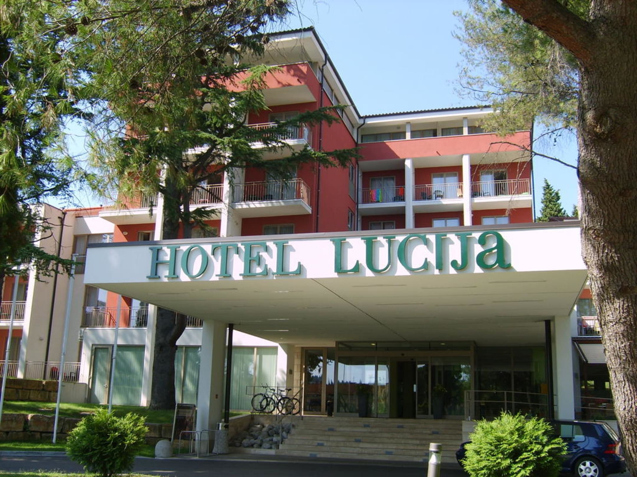 Eingangsbereich mit ZufahrtHotel kann direkt von der Hauptstraße (Obala) angefahren werden.